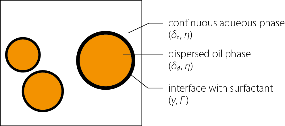 A key aspect in considering systems containing surfactants at interfaces is the relationship between surface tension and the degree of surfactant coverage at the interface.4, 5 Within an emulsion droplet, there is a certain pressure, called capillary pressure, described by the Laplace equation, in which the pressure difference between the interior of the emulsion droplet and the continuous phase (ΔP) depends on the surface tension (γ) and the radius of the dispersed particle (r). A decrease in surface tension positively influences the size of the formed emulsion droplets (Eq. (1)).