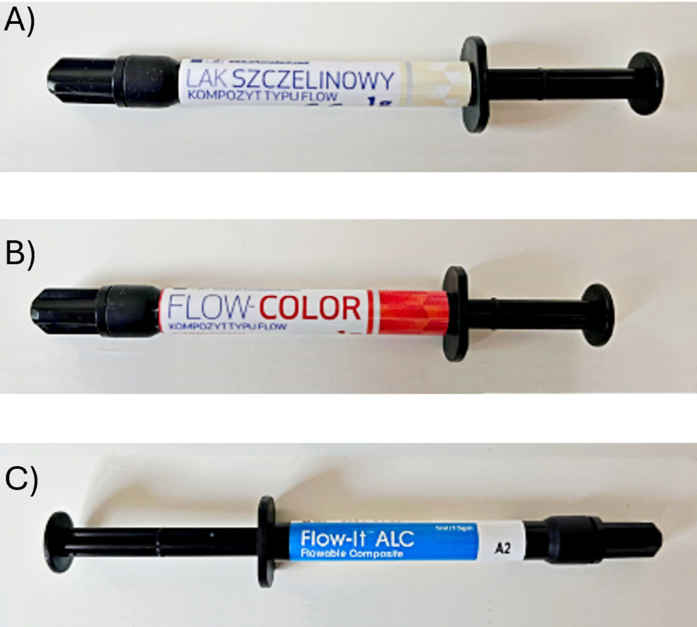The objective of this study was to make a comparison between the physicochemical and clinical-relevant properties of 3 commercially available resin-based pit and fissure sealants. The following resin-based sealants were examined: Arkona Fissure Sealant (AFS; Arkona, Nasutów, Poland), Flow-Color (FC; Arkona), and Flow-It ALC (FIA; Pentron, Orange, USA).