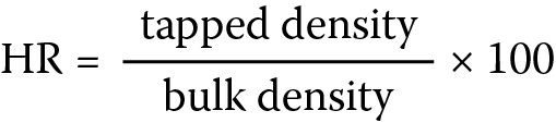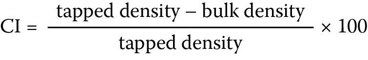 These were computed with data obtained from the bulk and tapped densities using the equations below (Equation 4):