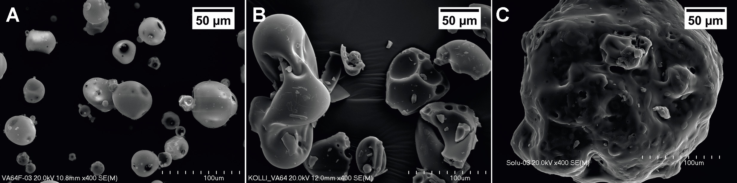 Spray-dried copovidone is a slightly yellow or white powder available in 2 commercial grades, i.e., Kollidon® VA 64 and Kollidon® VA 64 Fine (Table 2). As can be seen in Figure 1, they differ significantly in particle size and morphology. Standard grade particle sizes range between 50 μm and 250 μm and are irregular in shape. In contrast to the standard grade, the “Fine” grade has more than 80% of particles measuring less than 50 μm, and the majority of them are spherical. As a result, their applications are different (Table 2).