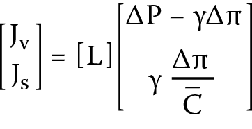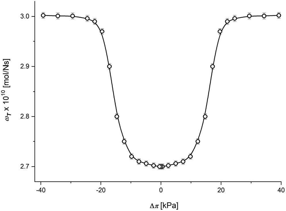 Therefore, the membrane transport properties are characterized by the hydraulic permeability (Lp), reflection (σ) and solute permeability (ω) coefficients, the definitions of which can be presented as Lp = (Jv⁄ΔP)Δπ = 0, σ =(ΔP⁄γΔπ)Jv = 0