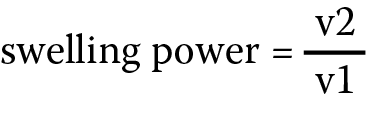 The polymer (0.5 g) was put into a measuring cylinder with a capacity of 10 mL, and the heights were recorded (h1). The polymer was mixed with phosphate buffer or distilled water to the 10 mL mark, and the resulting slurry was stirred for 5 min. The sedimentation height (h2) was measured after letting the suspension sit for 24 h. Next, the swelling power was determined30 (Equation 3):