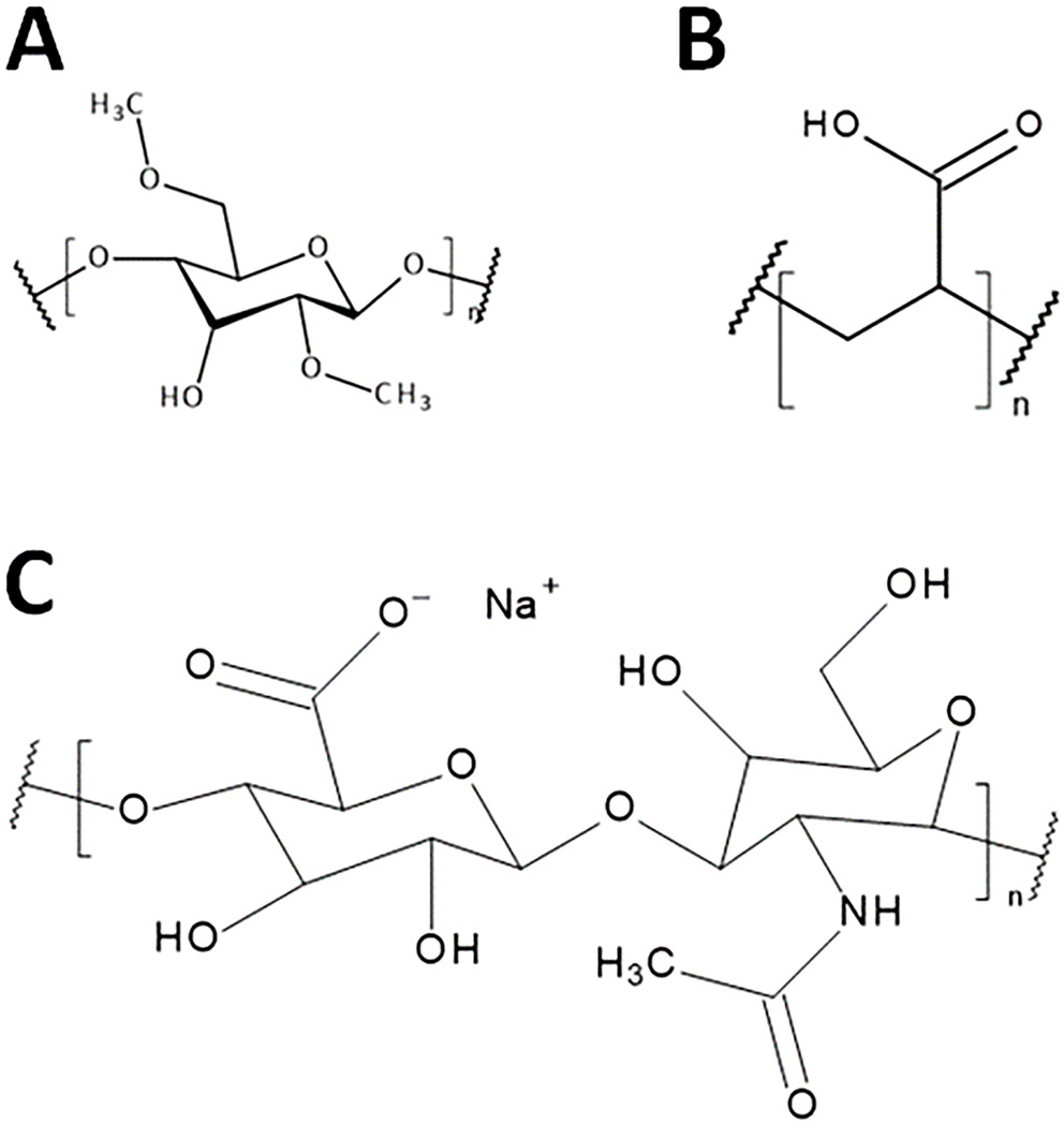 Sodium hyaluronate macromolecular (H-Na W) of molecular weight of 1.15 MDa (Escent, Szczecin, Poland), sodium hyaluronate ultramolecular (H-Na UM) of molecular weight of 4.5 kDa (Escent), hyaluronic acid 4% (K-H) (Escent), polyacrylic acid Carbopol®980 NF (PA) (Lubrizol, Wickliffe, USA), methylcellulose (MC) (Sigma-Aldrich, St. Louis, USA), and deionized water were obtained from the ionic column according to monography of the purified water from the European Pharmacopoeia; this type of water was used in all studies.