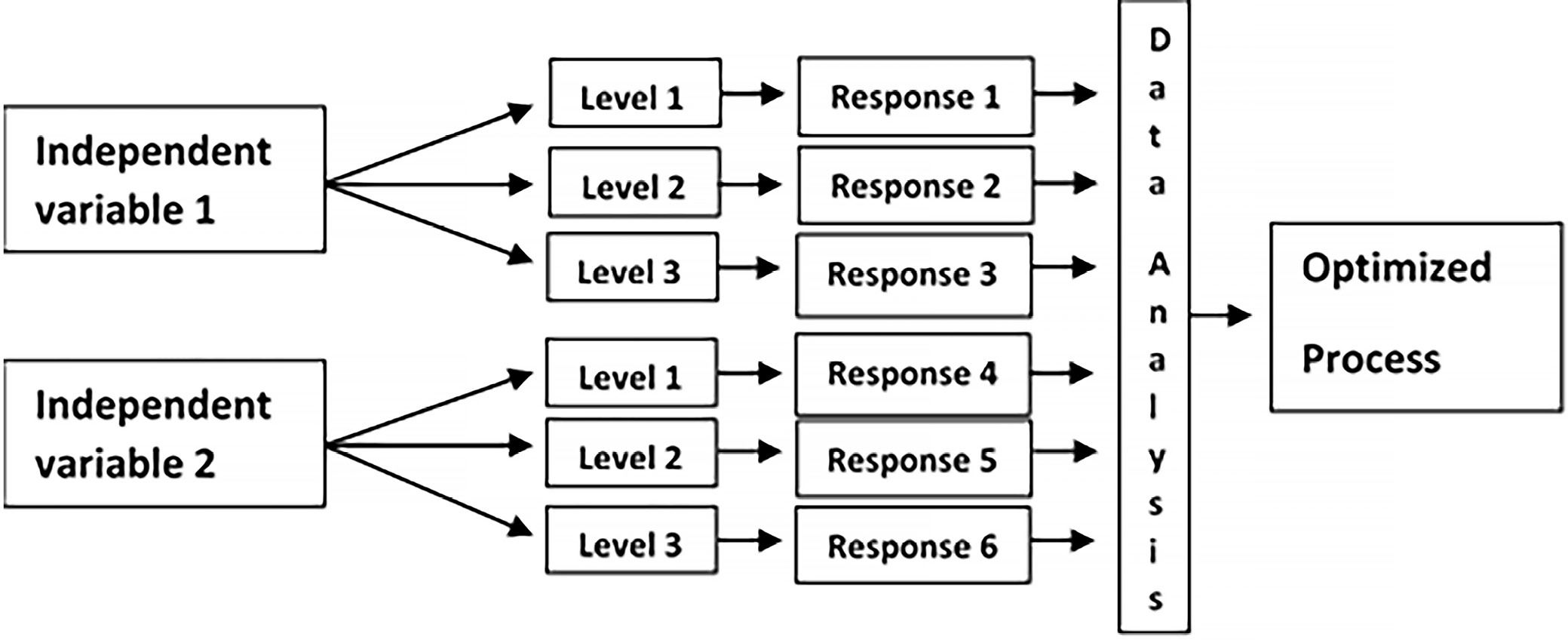 To perform the optimization, it is necessary to define the problem that must be solved, and then to determine the independent variables and their levels. In the latter step, a couple of preliminary experiments are required. Sometimes an experiment conducted for a specific combination of independent variables may fail. The next step is choosing an experimental matrix; Box–Behnken Design, Central Composite Design and Doehlert Design are the most commonly used. Performing the experiments provides the data and allows the researcher to draw the conclusions (Figure 1).